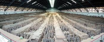 The Terra Cotta Army is an army of thousands of warriors and horses found at Eleven'an in the Shaanxi Province. To each one statue has its own unique and individual characteristics. Qin Si Huang began constructing himself a 50-square km tomb in which he will be buried and journey to the afterlife. It is believed that he made-up the Terra Cotta USA to guard and protect him in the hereafter.